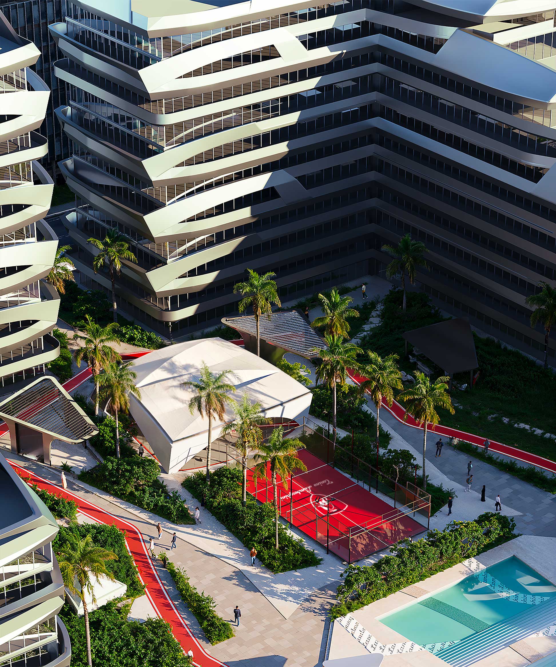 Set in Nad Al Sheba, you’re minutes from Meydan Racecourse, Dubai Mall, and Dubai Design District, with retail, dining, and clinics close by. Choose from 1 to 4-bedroom luxury apartments in a twin-tower community connected by a shared podium, plus standout amenities like a pool, gym, outdoor cinema, kids’ play areas, and a padel court.